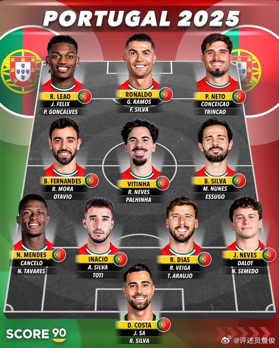 詹俊晒葡萄牙阵容:特别是中场人才济济,连内维斯都要客串右后卫